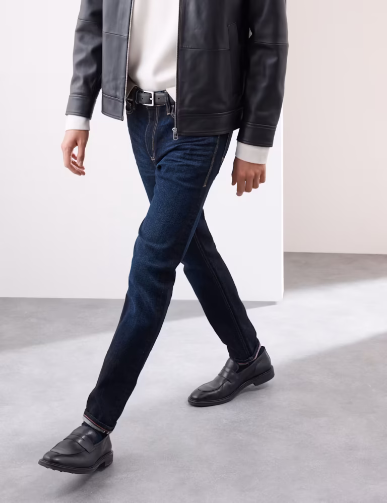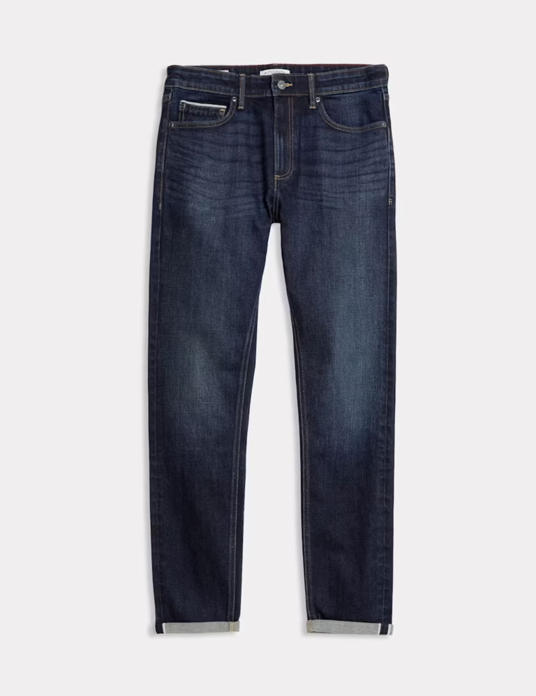 Upgrade your jeans collection with this premium pair crafted from Japanese selvedge denim. Slim fit for a stylish look. Selvedge seams are visible when the bottoms are turned up and on the coin pocket. Cotton-rich denim includes added stretch for comfort. M&S Collection: easy-to-wear wardrobe staples that combine classic and contemporary styles.