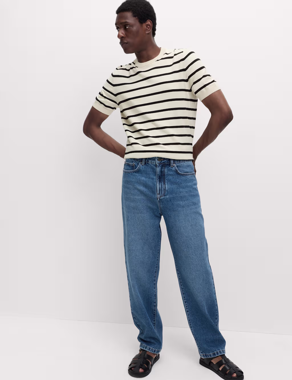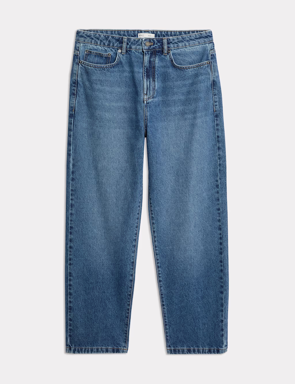 Low-slung and laid-back, these jeans are cut to a baggy fit from durable rigid denim. Authentic detailing comes in the form of the classic five-pocket design, contrast stitching and metal rivets Traditional button and zip fastening. Made from pure cotton. M&S Collection: easy-to-wear wardrobe staples that combine classic and contemporary styles.